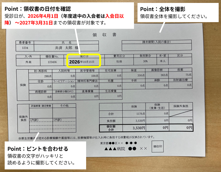 - ※領収書の宛名は、個人名のもののみ対象です。宛名が会社名の場合は申請には使えません。