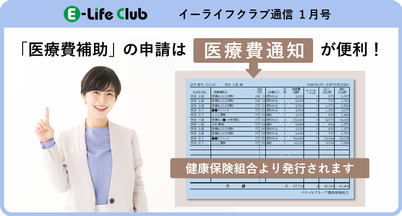 年明け最初のイーライフクラブ通信は、「医療費通知」を使ったヘルスケアサポート医療費補助の申請についてのご紹介です。